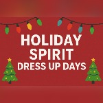 Missed Merry, Merry Monday? No worries. There is still plenty of time to join the fun. Check out the remaining themes below, grab your festive gear, and meet us each day at 11:00 a.m. by the Public Safety desk for a group photo.